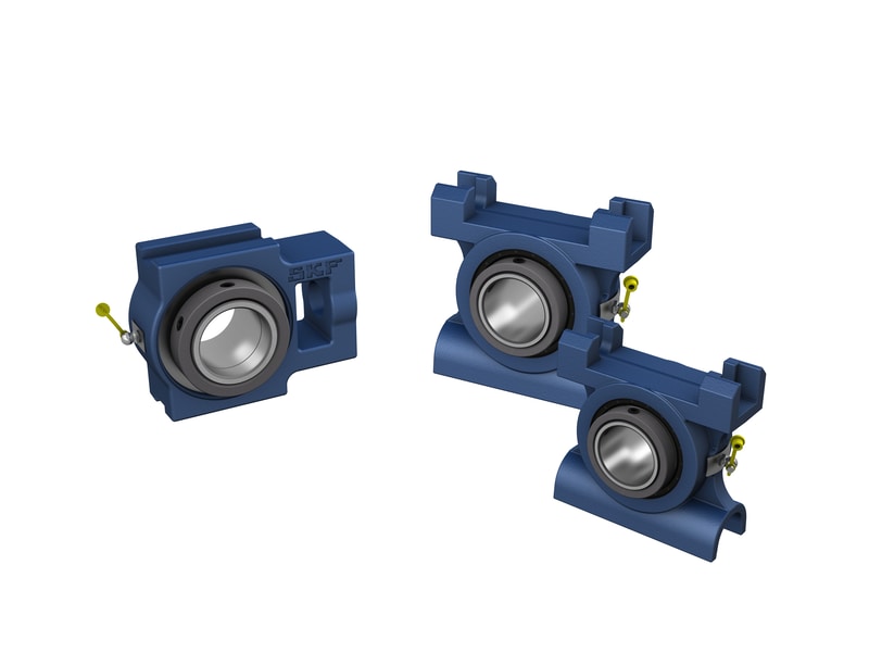 Натяжные роликоподшипниковые узлы SKF состоят из сферического или конического роликового подшипника, установленного в неразъёмном чугунном корпусе, который монтируется на самые распространённые типы рам. Уплотнённые узлы заполнены смазкой и готовы к эксплуатации. В ассортимент продукции входят узлы, отвечающие самым различным требованиям. Узлы не стандартизированы, но роликоподшипниковые узлы SKF по габаритам взаимозаменяемы с наиболее распространёнными типами подшипников.