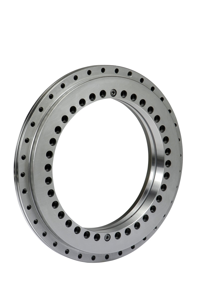 Прецизионные упорно-радиальные цилиндрические роликоподшипники обычно используются для опоры поворотных столов, делительных и многошпиндельных головок многоцелевых станков. SKF выпускает прецизионные упорно-радиальные цилиндрические роликоподшипники для валов диаметром от 80 до 850 мм. Их внутренняя конструкция и усовершенствованные производственные процессы позволяют получать величину осевого биения, близкую к классу точности P4, и величину радиального биения, превышающую требования этого класса.