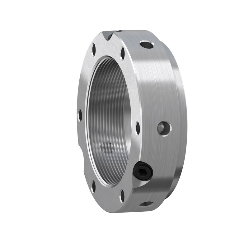 Промышленные стопорные гайки со стопорными шайбами не предназначены для использования с прецизионными подшипниками из-за относительно широких производственных допусков резьбы и опорных поверхностей. По этой причине SKF разработала линейку прецизионных стопорных гаек, выпускаемых с очень жёсткими допусками. Эти простые монтажные устройства точно и эффективно фиксируют подшипники и другие компоненты на валу, и отвечают требованиям станочного оборудования как с технической, так и экономической точек зрения. Все прецизионные стопорные гайки SKF имеют специальные стопорные устройства для обеспечения надёжного сопряжения между резьбой шпиндельного вала и стопорной гайки. SKF выпускает прецизионные стопорные гайки следующего типа: прецизионные стопорные гайки со стопорными штифтами